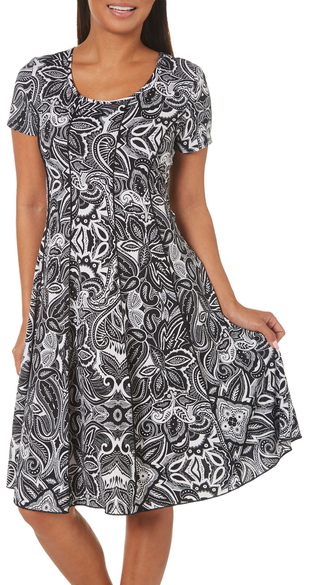 Sami Jo Offers Chic Casual Designs In Vibrant Colors And Stylish Prints This Dress Features Short Sleeves A Swee Paisley Dress Dresses Short Sleeve Dresses